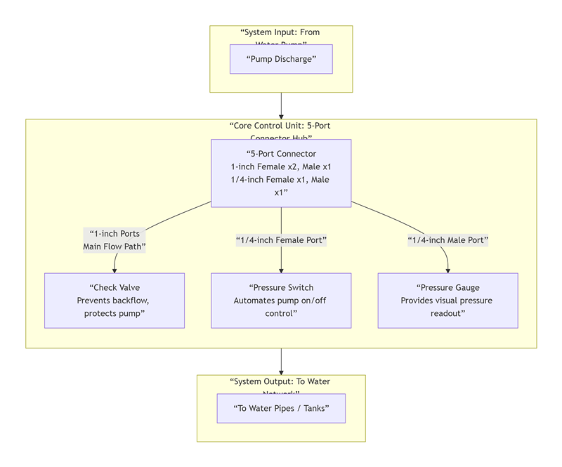 ตัวเชื่อมต่อห้าทาง: เฟรมเวิร์กหลักของระบบ การเชื่อมต่อส่วนประกอบทั้งหมดเข้าด้วยกัน ลดข้อต่อท่อให้เหลือน้อยที่สุด และลดความเสี่ยงของการรั่วไหล